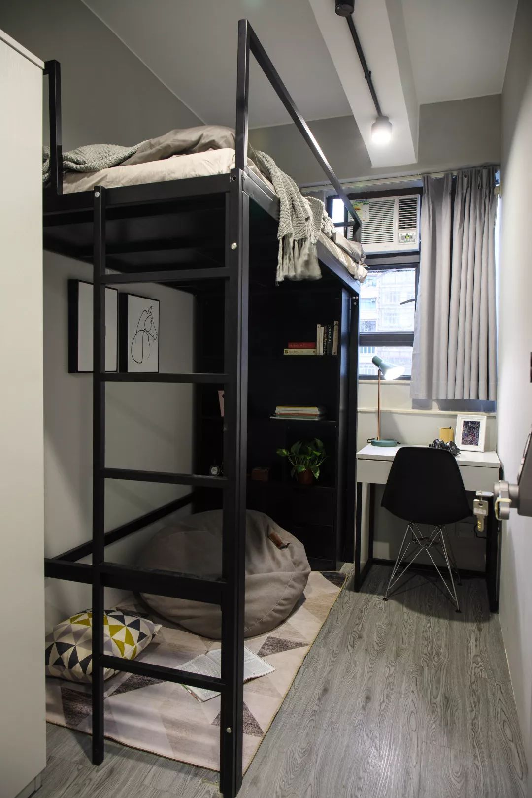 单人房C除了设计了床边床头书架,