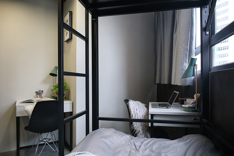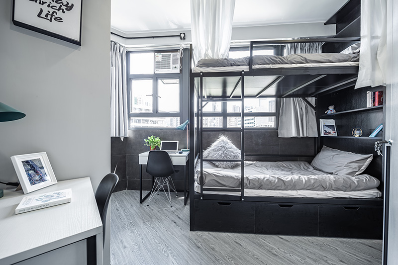 HereIN Yau Ma Tei Premium Serviced Student Apartment is the student apartment project of "HereIN International Youth Apartment" located in the core area of Yau Ma Tei, which covers the top universities in Kowloon District of Hong Kong and has an excellent location. Newly designed and decorated with the most popular black, white and gray ins style design, management service style, and the most beautiful rooftop student activity site in the whole network. 2019 as soon as it was launched in the market has created a high quality reputation of student apartments in Hong Kong and the industry benchmark. Room type introduction: "HereIN Yau Ma Tei Premium Serviced Student Apartment" is a 7-storey apartment, providing 56 rooms. Two types of rooms, double room and single room, are available to meet your different needs. - Room Type A: Single Room (70 feet) - Room Type B: Single Room (60 feet) - Room Type C: Single Room (50 feet) - Room Type D: Double Room (80 feet) - Room Type E: Double Room (80 feet) - Room Type F: Double Room (100 feet) - Room Type G: Double Room (100 feet) - Room Type H: Double Room (100 feet) Facilities & Services Introduction : "HereIN Yau Ma Tei Premium Serviced Student Apartment" chooses quiet gray as the main color of the whole room design, and makes full use of the advanced texture of the material in various layers of gray to give the room a quiet and calm atmosphere. - Room Amenities: single room, double room, common kitchen, wet and dry separation bathroom, net rooftop, elevator- Service: small assistant at the front desk, 24-hour surveillance security in public areas